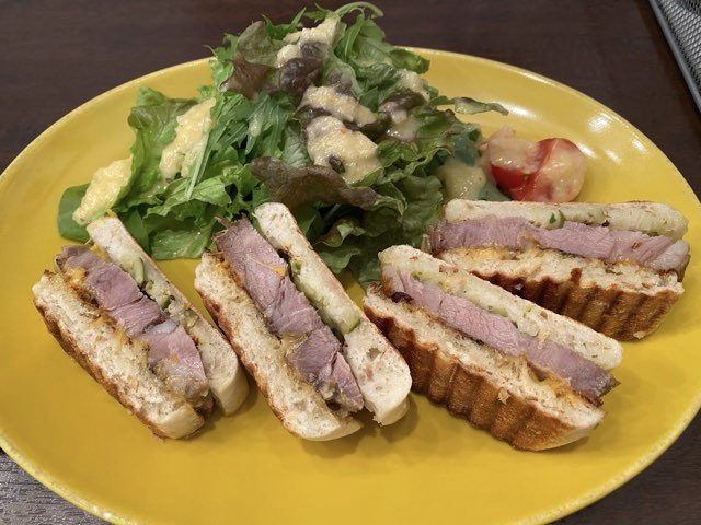 煮込んだお肉のホットサンドで美味しいです。