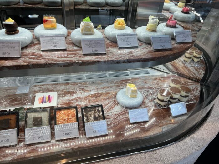 オシャレにケーキが並んでいて、どれも美味しそうです。