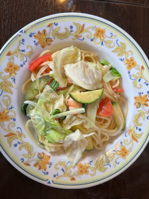 少しニンニクが効いていて、たっぷりと大きめな夏野菜が入っていました。
