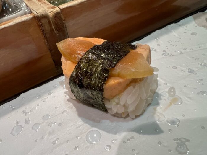 創作寿司で、普通のお寿司屋さんとは違うお寿司で全部美味しいです。