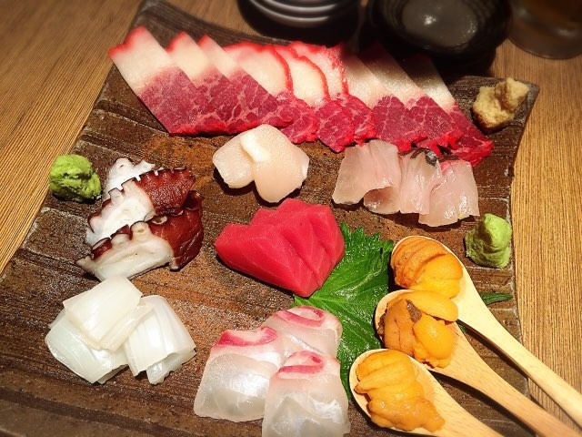 どのお刺身も美味しいのですが、特に美味しいのはくじらベーコンとウニです。