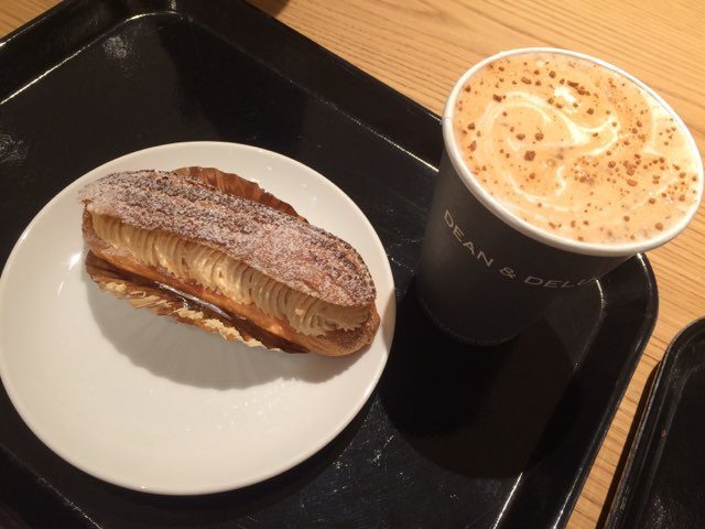 塩キャラメルのエクレアとチャイティーラテにしました。
