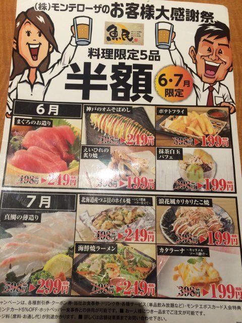 6月7月は半額メニューがありました。